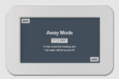 Functie Thuis/weg - Door op de knop Weg te drukken wordt elke kamer in de terugstelmodus gezet en wordt het warme water uitgeschakeld.